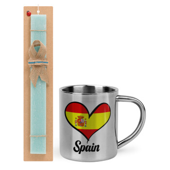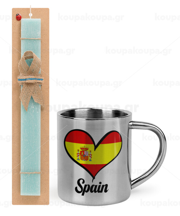 Spain flag, Πασχαλινή Λαμπάδα με μεταλλική κούπα θερμό (300ml) & κερί αρωματικό πλακέ (30cm) (ΤΙΡΚΟΥΑΖ)