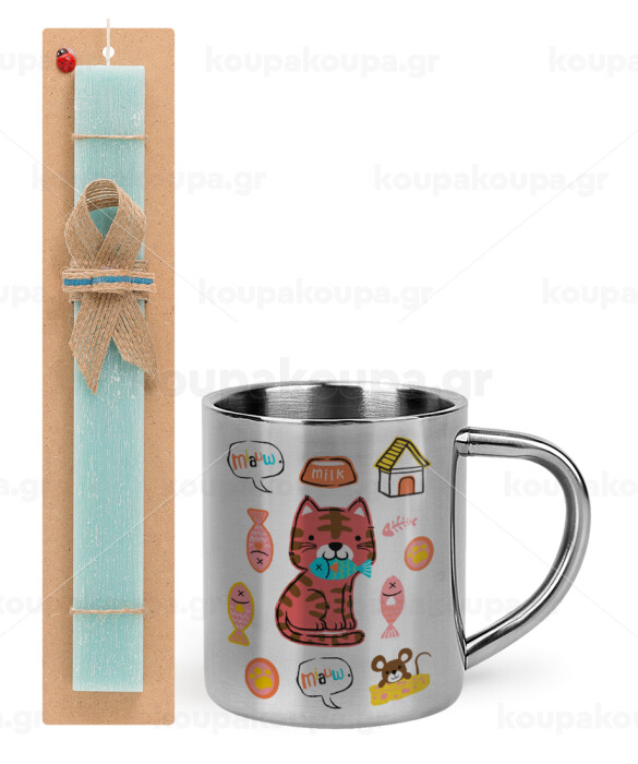Cats and Fishes, Πασχαλινή Λαμπάδα με μεταλλική κούπα θερμό (300ml) & κερί αρωματικό πλακέ (30cm) (ΤΙΡΚΟΥΑΖ)