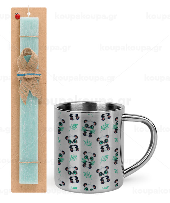 Panda, Πασχαλινή Λαμπάδα με μεταλλική κούπα θερμό (300ml) & κερί αρωματικό πλακέ (30cm) (ΤΙΡΚΟΥΑΖ)