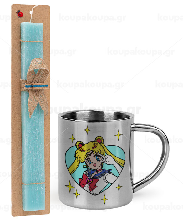 Sailor Moon star, Πασχαλινή Λαμπάδα με μεταλλική κούπα θερμό (300ml) & κερί αρωματικό πλακέ (30cm) (ΤΙΡΚΟΥΑΖ)