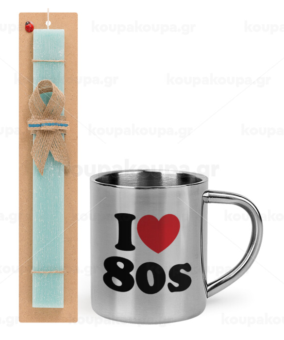 I Love 80s, Πασχαλινή Λαμπάδα με μεταλλική κούπα θερμό (300ml) & κερί αρωματικό πλακέ (30cm) (ΤΙΡΚΟΥΑΖ)