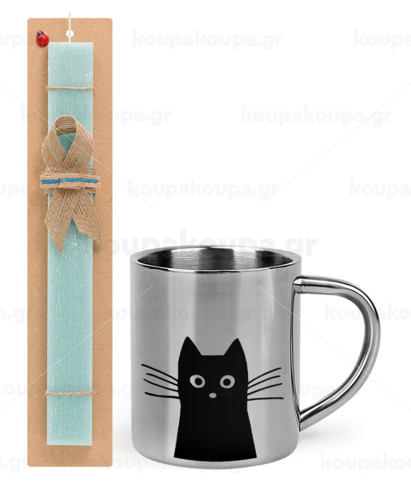 Μαύρη γάτα, Πασχαλινή Λαμπάδα με μεταλλική κούπα θερμό (300ml) & κερί αρωματικό πλακέ (30cm) (ΤΙΡΚΟΥΑΖ)