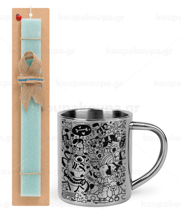 Σκυλάκια, Πασχαλινή Λαμπάδα με μεταλλική κούπα θερμό (300ml) & κερί αρωματικό πλακέ (30cm) (ΤΙΡΚΟΥΑΖ)