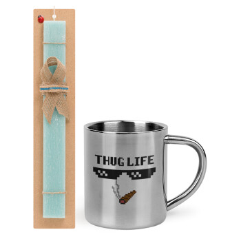 Πασχαλινή Λαμπάδα με μεταλλική κούπα θερμό (300ml) & κερί αρωματικό πλακέ (30cm) (ΤΙΡΚΟΥΑΖ) με θέμα Emoji / Avatars