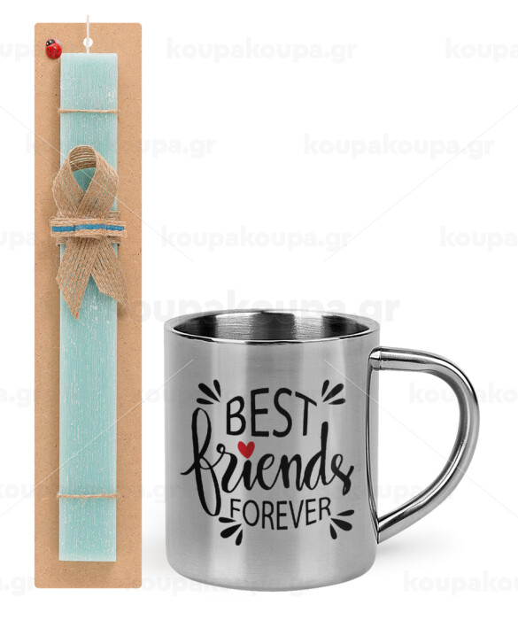 Best Friends forever, Πασχαλινή Λαμπάδα με μεταλλική κούπα θερμό (300ml) & κερί αρωματικό πλακέ (30cm) (ΤΙΡΚΟΥΑΖ)