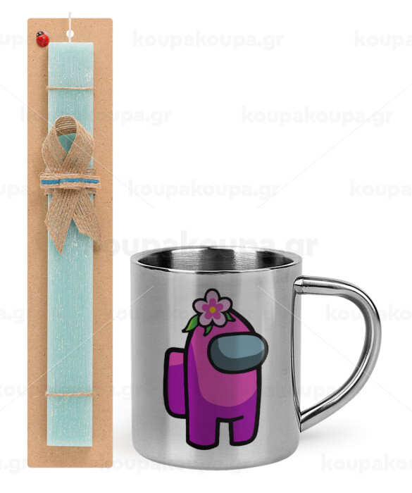 Among US girl, Πασχαλινή Λαμπάδα με μεταλλική κούπα θερμό (300ml) & κερί αρωματικό πλακέ (30cm) (ΤΙΡΚΟΥΑΖ)