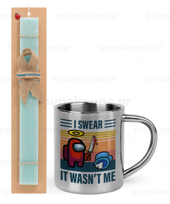 Among us, I swear it wasn't me, Πασχαλινή Λαμπάδα με μεταλλική κούπα θερμό (300ml) & κερί αρωματικό πλακέ (30cm) (ΤΙΡΚΟΥΑΖ)