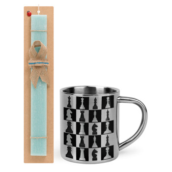 Chess set, Πασχαλινή Λαμπάδα με μεταλλική κούπα θερμό (300ml) & κερί αρωματικό πλακέ (30cm) (ΤΙΡΚΟΥΑΖ)