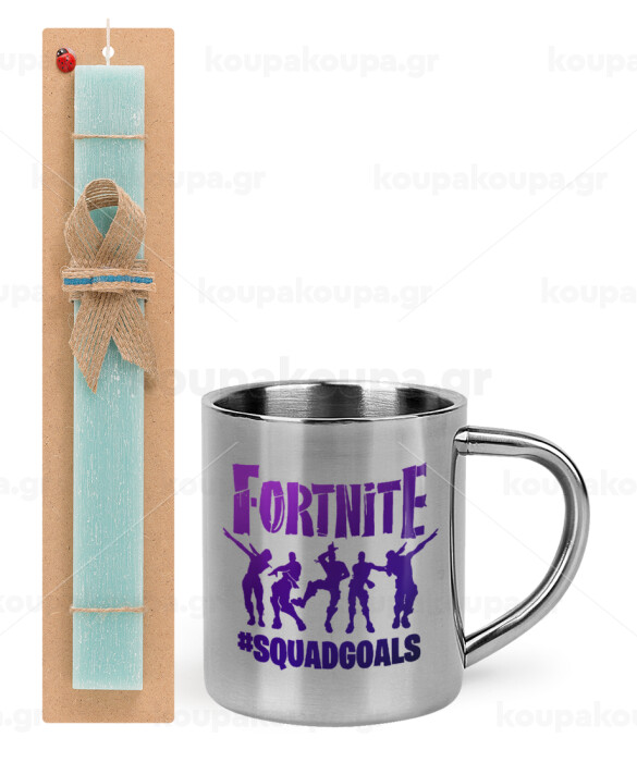 Fortnite #squadgoals, Πασχαλινή Λαμπάδα με μεταλλική κούπα θερμό (300ml) & κερί αρωματικό πλακέ (30cm) (ΤΙΡΚΟΥΑΖ)