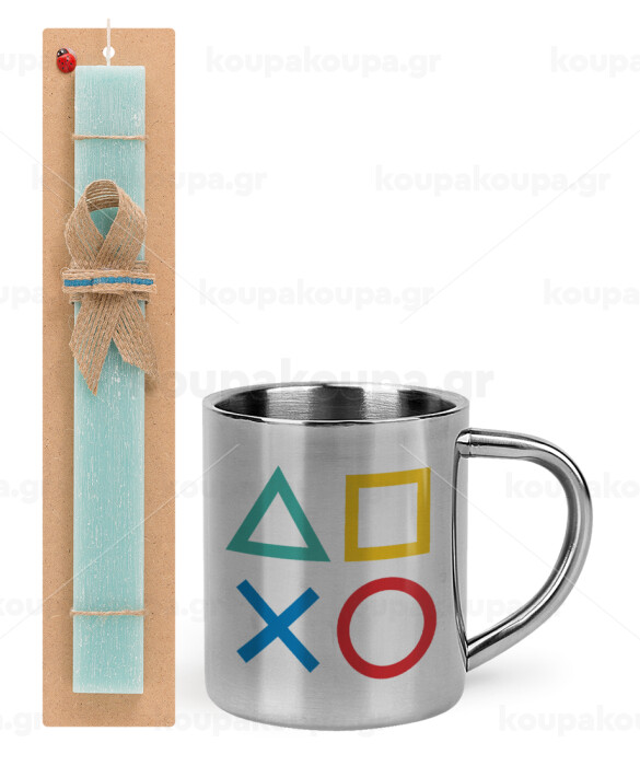 Gaming Symbols, Πασχαλινή Λαμπάδα με μεταλλική κούπα θερμό (300ml) & κερί αρωματικό πλακέ (30cm) (ΤΙΡΚΟΥΑΖ)