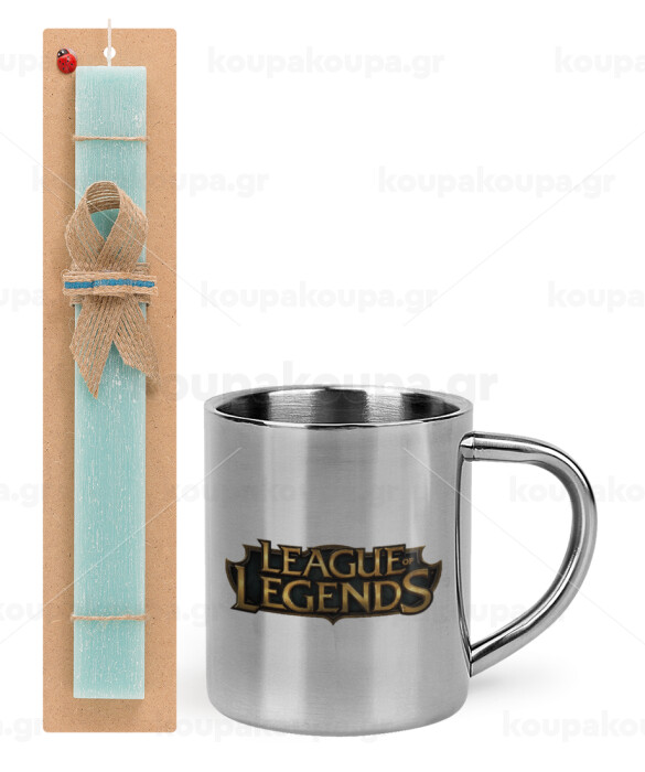 League of Legends LoL, Πασχαλινή Λαμπάδα με μεταλλική κούπα θερμό (300ml) & κερί αρωματικό πλακέ (30cm) (ΤΙΡΚΟΥΑΖ)