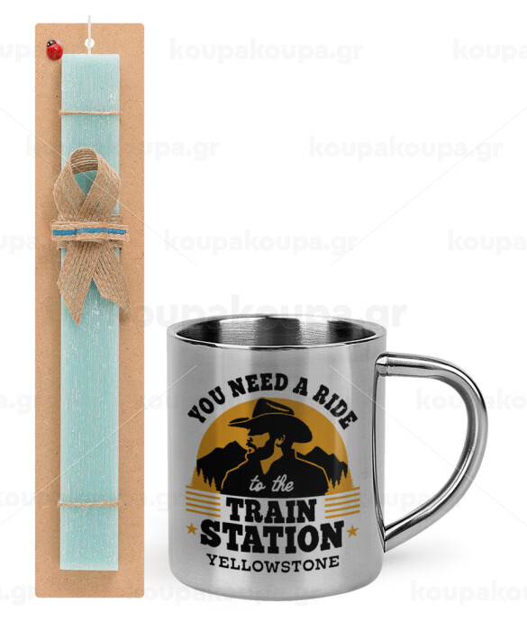 You need a ride to the train station, Πασχαλινή Λαμπάδα με μεταλλική κούπα θερμό (300ml) & κερί αρωματικό πλακέ (30cm) (ΤΙΡΚΟΥΑΖ)