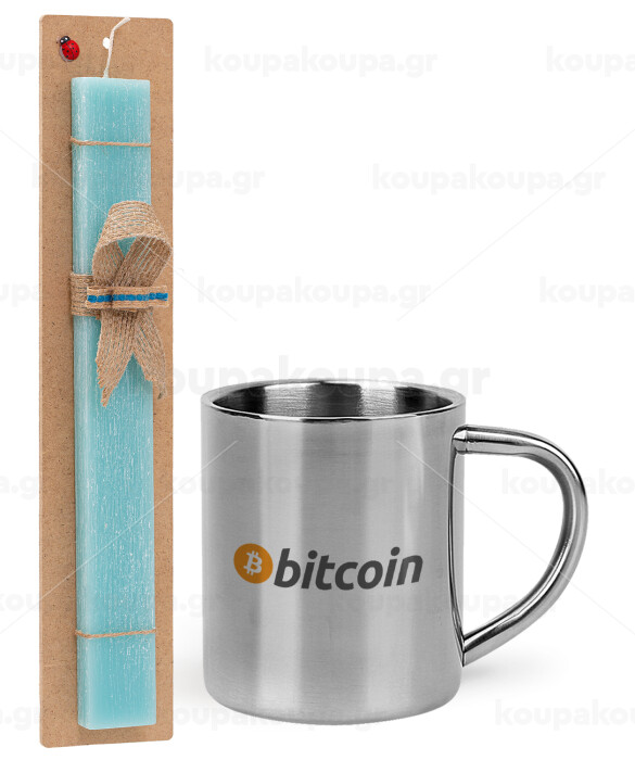 Bitcoin Crypto, Πασχαλινή Λαμπάδα με μεταλλική κούπα θερμό (300ml) & κερί αρωματικό πλακέ (30cm) (ΤΙΡΚΟΥΑΖ)