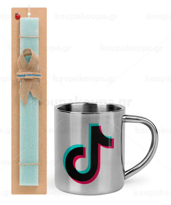 tik tok, Πασχαλινή Λαμπάδα με μεταλλική κούπα θερμό (300ml) & κερί αρωματικό πλακέ (30cm) (ΤΙΡΚΟΥΑΖ)