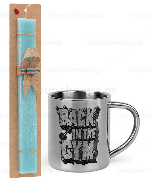 Back in the GYM, Πασχαλινή Λαμπάδα με μεταλλική κούπα θερμό (300ml) & κερί αρωματικό πλακέ (30cm) (ΤΙΡΚΟΥΑΖ)