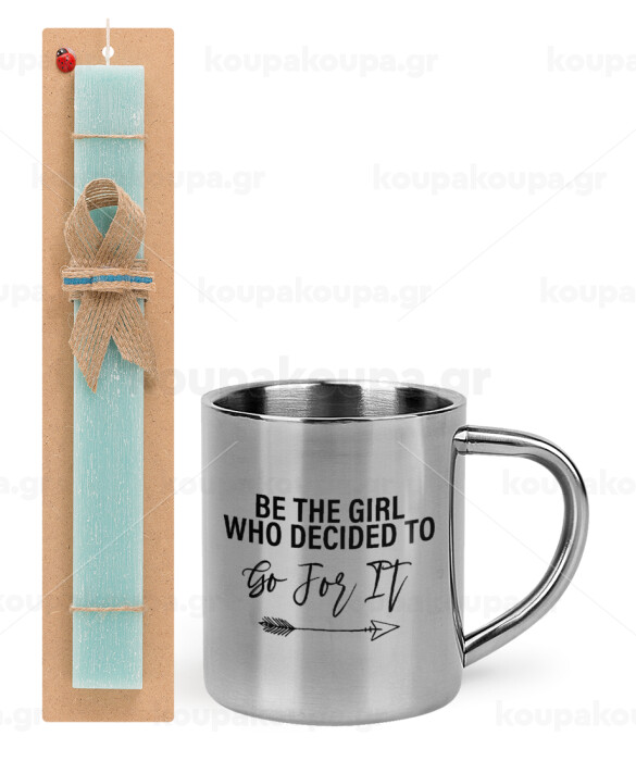 Be the girl who decided to, Πασχαλινή Λαμπάδα με μεταλλική κούπα θερμό (300ml) & κερί αρωματικό πλακέ (30cm) (ΤΙΡΚΟΥΑΖ)