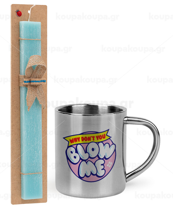 Why Don't You Blow Me Funny, Πασχαλινή Λαμπάδα με μεταλλική κούπα θερμό (300ml) & κερί αρωματικό πλακέ (30cm) (ΤΙΡΚΟΥΑΖ)