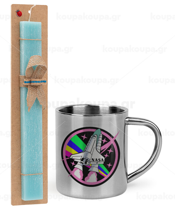 NASA pink, Πασχαλινή Λαμπάδα με μεταλλική κούπα θερμό (300ml) & κερί αρωματικό πλακέ (30cm) (ΤΙΡΚΟΥΑΖ)
