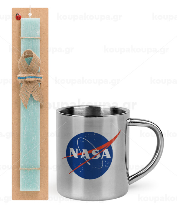 Nasa, Πασχαλινή Λαμπάδα με μεταλλική κούπα θερμό (300ml) & κερί αρωματικό πλακέ (30cm) (ΤΙΡΚΟΥΑΖ)