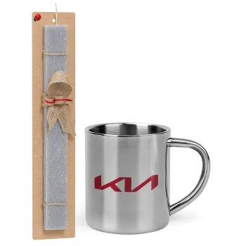 KIA, Πασχαλινή Λαμπάδα με μεταλλική κούπα θερμό (300ml) & κερί αρωματικό πλακέ (30cm) (ΓΚΡΙ)