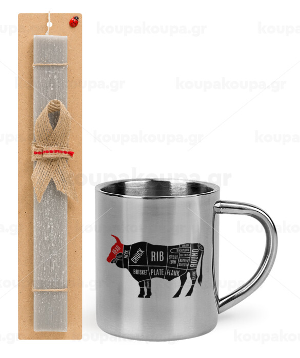 Diagrams for butcher shop, Πασχαλινή Λαμπάδα με μεταλλική κούπα θερμό (300ml) & κερί αρωματικό πλακέ (30cm) (ΓΚΡΙ)