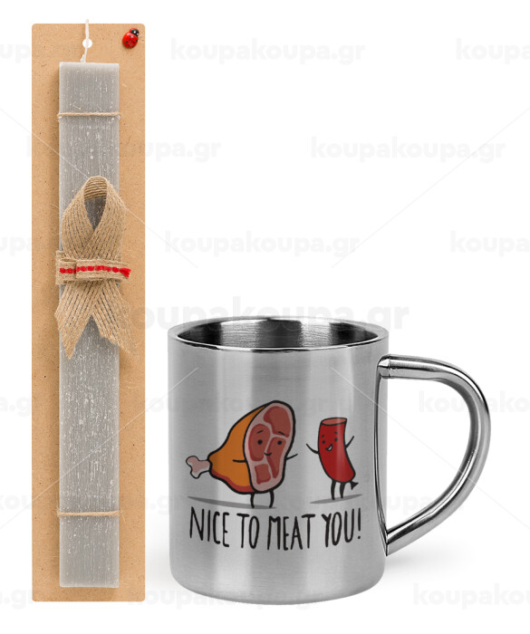 Nice to MEAT you, Πασχαλινή Λαμπάδα με μεταλλική κούπα θερμό (300ml) & κερί αρωματικό πλακέ (30cm) (ΓΚΡΙ)