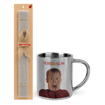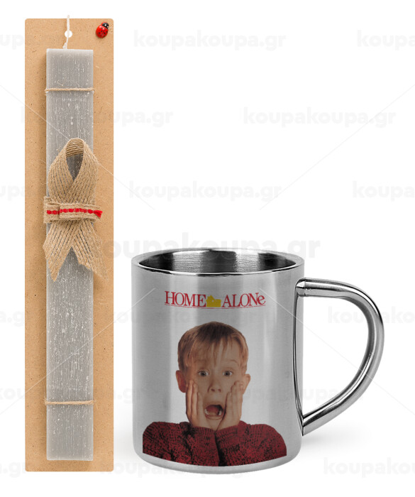 Μόνος στο σπίτι Kevin McCallister Shocked, Πασχαλινή Λαμπάδα με μεταλλική κούπα θερμό (300ml) & κερί αρωματικό πλακέ (30cm) (ΓΚΡΙ)