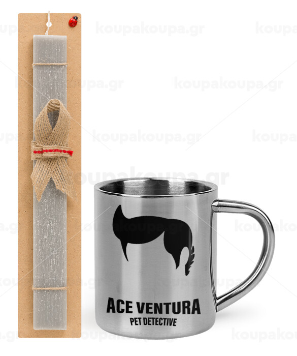 Ace Ventura Pet Detective, Πασχαλινή Λαμπάδα με μεταλλική κούπα θερμό (300ml) & κερί αρωματικό πλακέ (30cm) (ΓΚΡΙ)