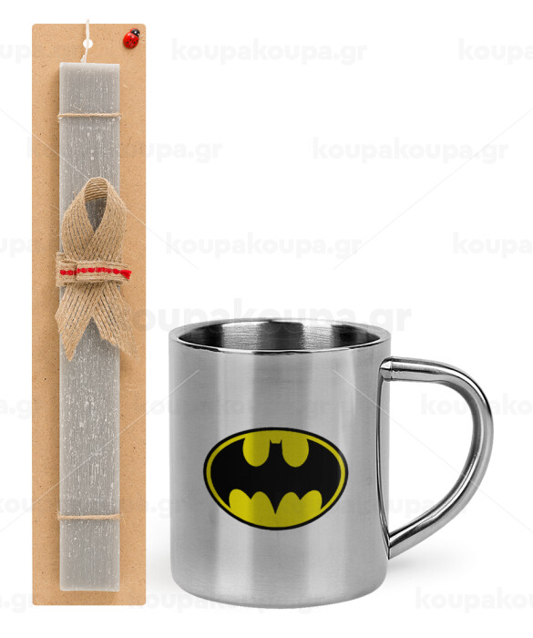 Batman, Πασχαλινή Λαμπάδα με μεταλλική κούπα θερμό (300ml) & κερί αρωματικό πλακέ (30cm) (ΓΚΡΙ)