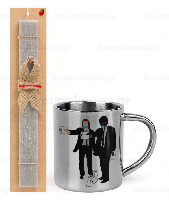Pulp Fiction 3 meter away, Πασχαλινή Λαμπάδα με μεταλλική κούπα θερμό (300ml) & κερί αρωματικό πλακέ (30cm) (ΓΚΡΙ)