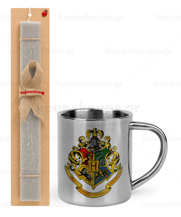 Hogwart's, Πασχαλινή Λαμπάδα με μεταλλική κούπα θερμό (300ml) & κερί αρωματικό πλακέ (30cm) (ΓΚΡΙ)