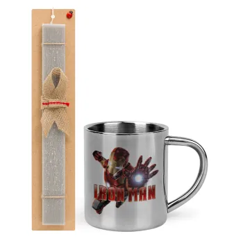 Ironman, Πασχαλινή Λαμπάδα με μεταλλική κούπα θερμό (300ml) & κερί αρωματικό πλακέ (30cm) (ΓΚΡΙ)