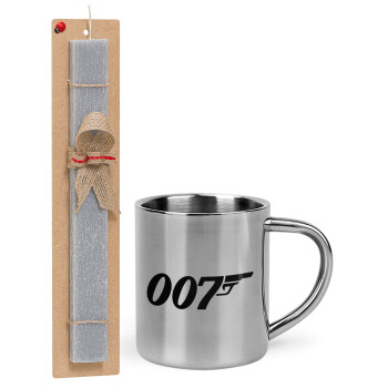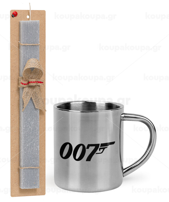 James Bond 007, Πασχαλινή Λαμπάδα με μεταλλική κούπα θερμό (300ml) & κερί αρωματικό πλακέ (30cm) (ΓΚΡΙ)