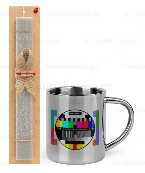 No signal, Πασχαλινή Λαμπάδα με μεταλλική κούπα θερμό (300ml) & κερί αρωματικό πλακέ (30cm) (ΓΚΡΙ)