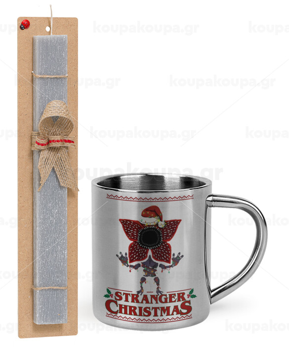 Stranger Things Christmas, Πασχαλινή Λαμπάδα με μεταλλική κούπα θερμό (300ml) & κερί αρωματικό πλακέ (30cm) (ΓΚΡΙ)