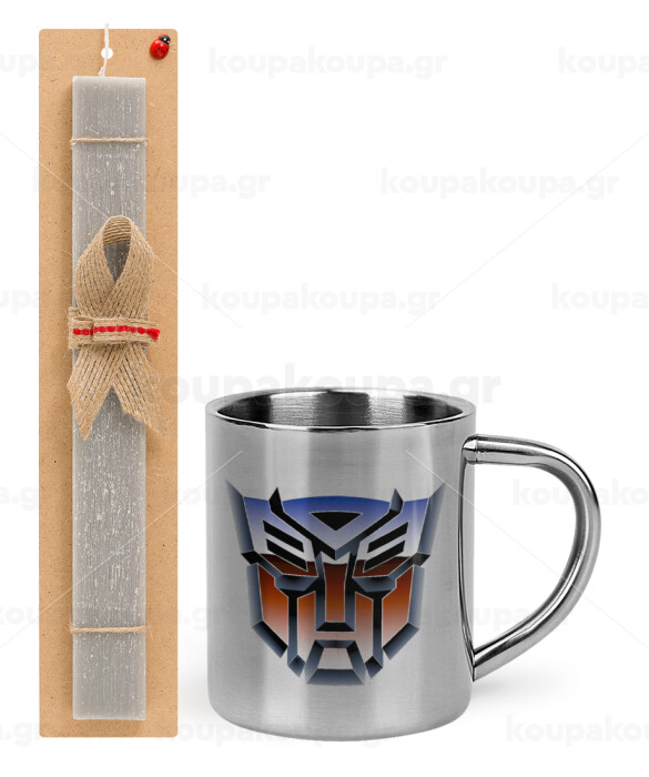 Transformers, Πασχαλινή Λαμπάδα με μεταλλική κούπα θερμό (300ml) & κερί αρωματικό πλακέ (30cm) (ΓΚΡΙ)