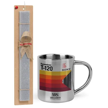 VHS sony dynamicron T-120, Πασχαλινή Λαμπάδα με μεταλλική κούπα θερμό (300ml) & κερί αρωματικό πλακέ (30cm) (ΓΚΡΙ)