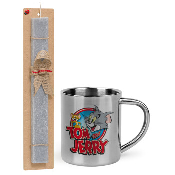 Τομ και Τζέρι, Πασχαλινή Λαμπάδα με μεταλλική κούπα θερμό (300ml) & κερί αρωματικό πλακέ (30cm) (ΓΚΡΙ)