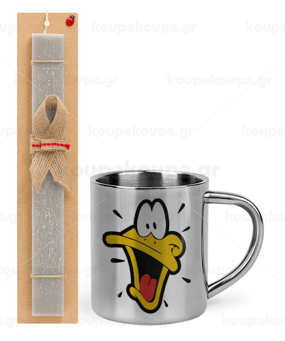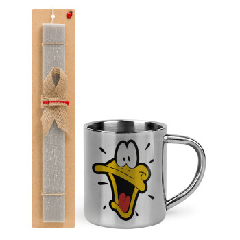 Daffy Duck, Πασχαλινή Λαμπάδα με μεταλλική κούπα θερμό (300ml) & κερί αρωματικό πλακέ (30cm) (ΓΚΡΙ)