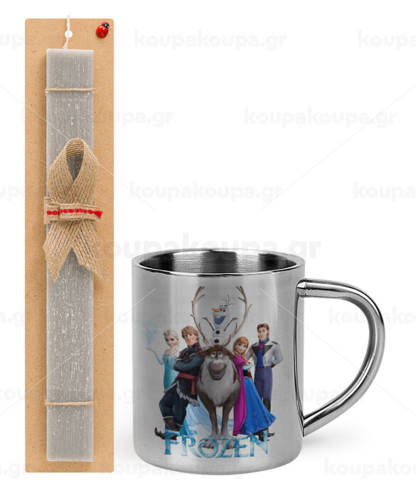 Frozen, Πασχαλινή Λαμπάδα με μεταλλική κούπα θερμό (300ml) & κερί αρωματικό πλακέ (30cm) (ΓΚΡΙ)