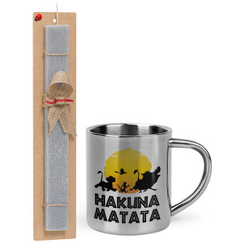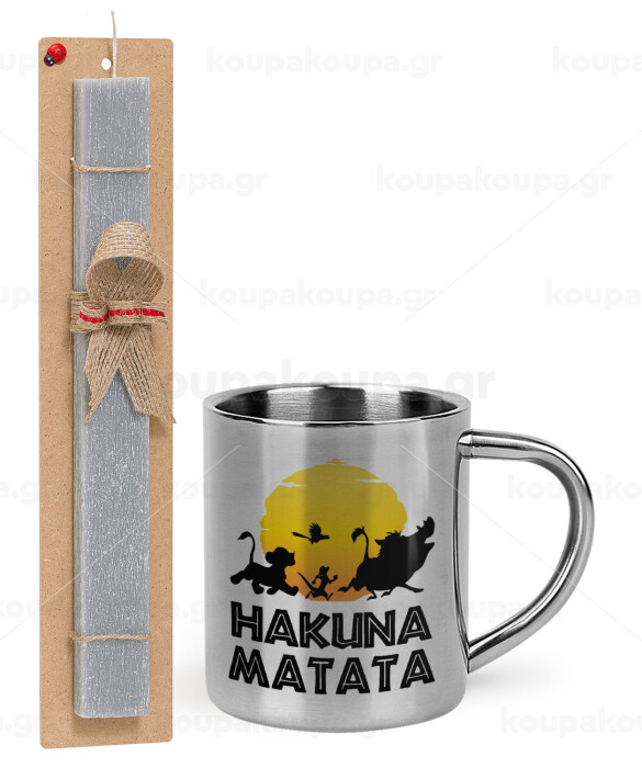 Hakuna Matata, Πασχαλινή Λαμπάδα με μεταλλική κούπα θερμό (300ml) & κερί αρωματικό πλακέ (30cm) (ΓΚΡΙ)