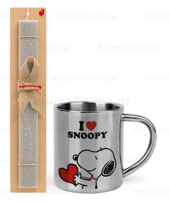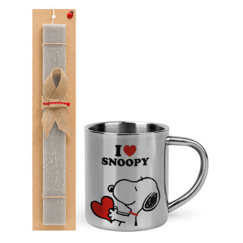 I LOVE SNOOPY, Πασχαλινή Λαμπάδα με μεταλλική κούπα θερμό (300ml) & κερί αρωματικό πλακέ (30cm) (ΓΚΡΙ)