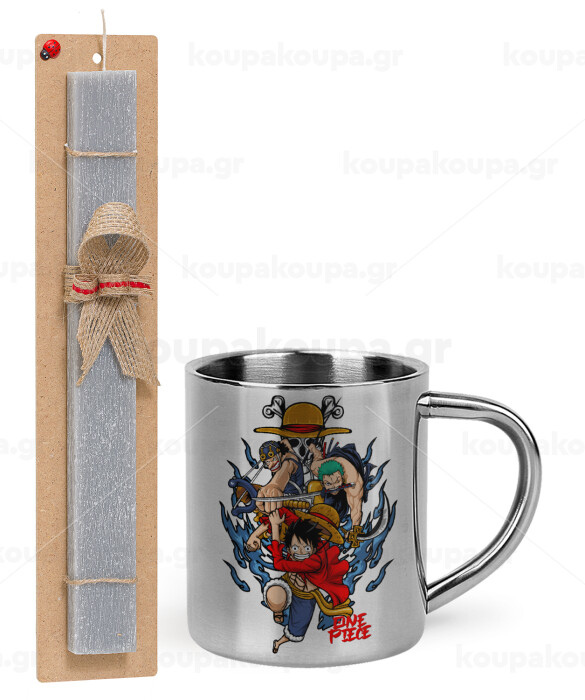 One Piece, Πασχαλινή Λαμπάδα με μεταλλική κούπα θερμό (300ml) & κερί αρωματικό πλακέ (30cm) (ΓΚΡΙ)