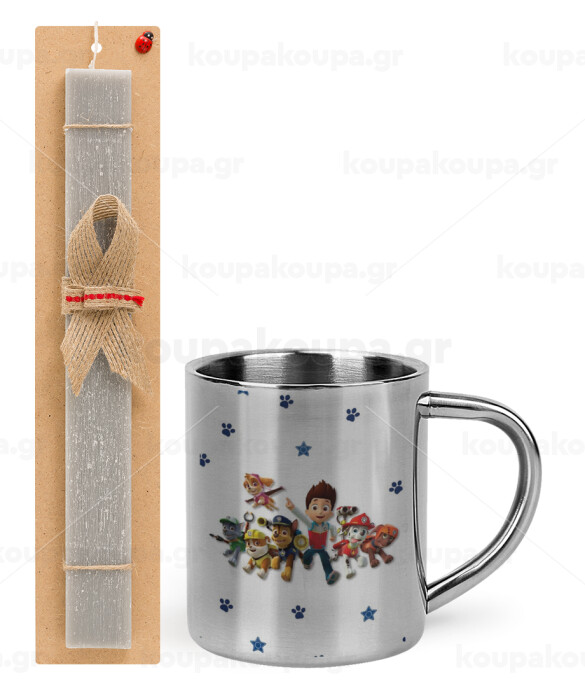 paw patrol, Πασχαλινή Λαμπάδα με μεταλλική κούπα θερμό (300ml) & κερί αρωματικό πλακέ (30cm) (ΓΚΡΙ)