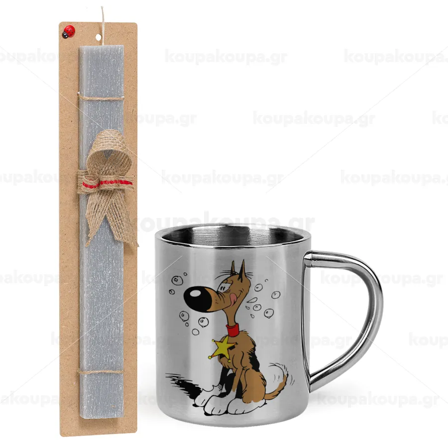 Rantanplan (Ρανταπλάν), Πασχαλινή Λαμπάδα με μεταλλική κούπα θερμό (300ml) & κερί αρωματικό πλακέ (30cm) (ΓΚΡΙ)