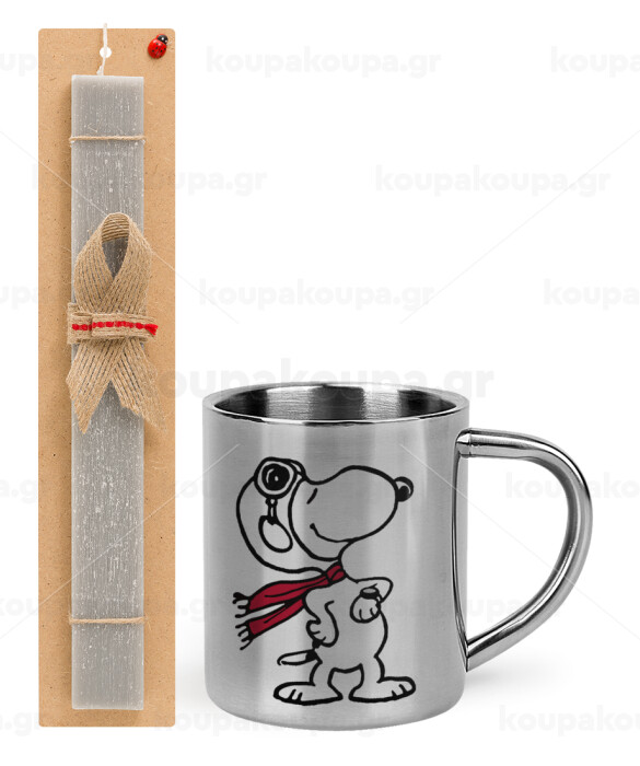 Snoopy ο πιλότος, Πασχαλινή Λαμπάδα με μεταλλική κούπα θερμό (300ml) & κερί αρωματικό πλακέ (30cm) (ΓΚΡΙ)