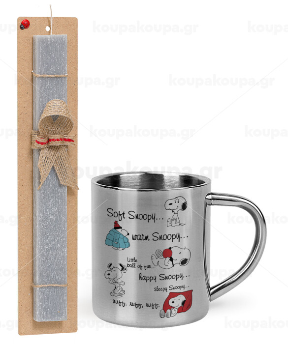 Snoopy manual, Πασχαλινή Λαμπάδα με μεταλλική κούπα θερμό (300ml) & κερί αρωματικό πλακέ (30cm) (ΓΚΡΙ)