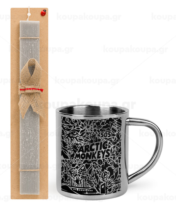 Arctic Monkeys, Πασχαλινή Λαμπάδα με μεταλλική κούπα θερμό (300ml) & κερί αρωματικό πλακέ (30cm) (ΓΚΡΙ)