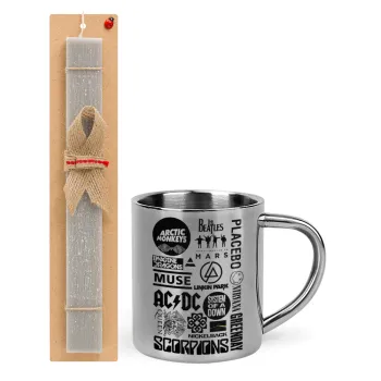 Best Rock Bands Collection, Πασχαλινή Λαμπάδα με μεταλλική κούπα θερμό (300ml) & κερί αρωματικό πλακέ (30cm) (ΓΚΡΙ)