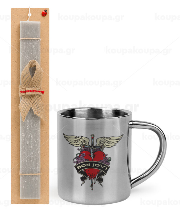 Bon Jovi, Πασχαλινή Λαμπάδα με μεταλλική κούπα θερμό (300ml) & κερί αρωματικό πλακέ (30cm) (ΓΚΡΙ)